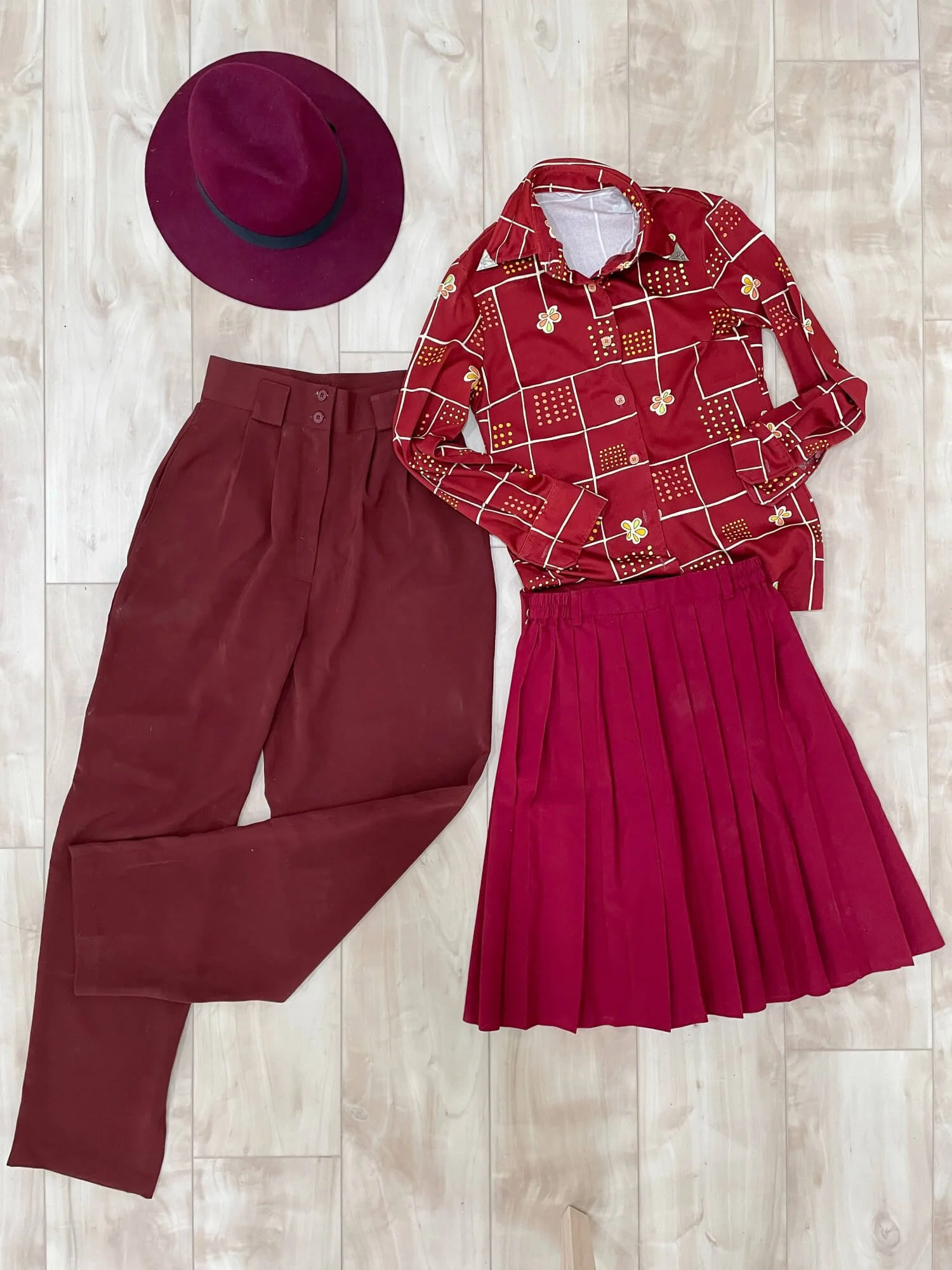 I also have a burgundy red fedora hat that will be a lovely addition as an accessory!